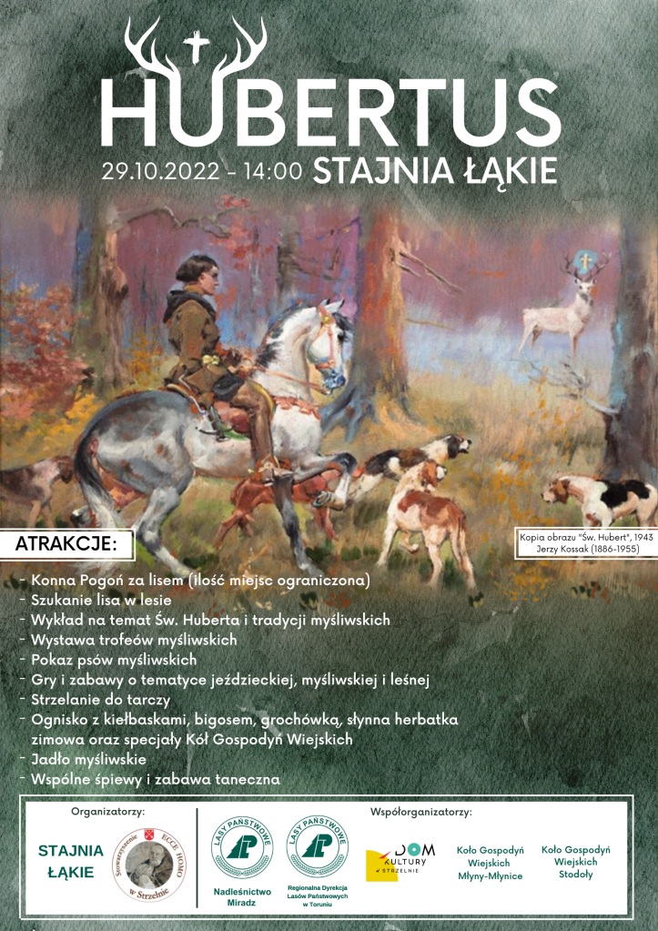 W sobotę, 29.10.2022, o godzinie 14:00 w Stajni Łąkie odbędzie się święto myśliwych, leśników i jeźdźców „Hubertus”.