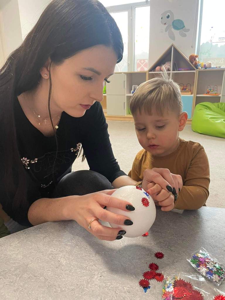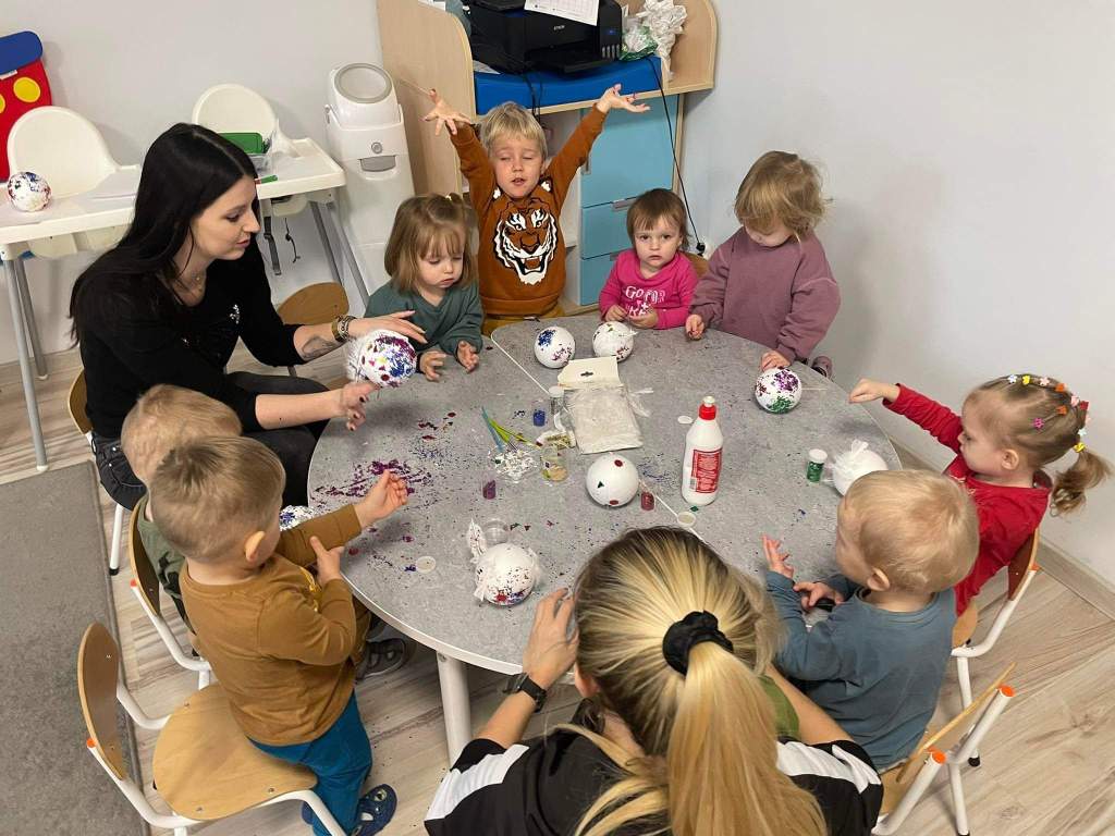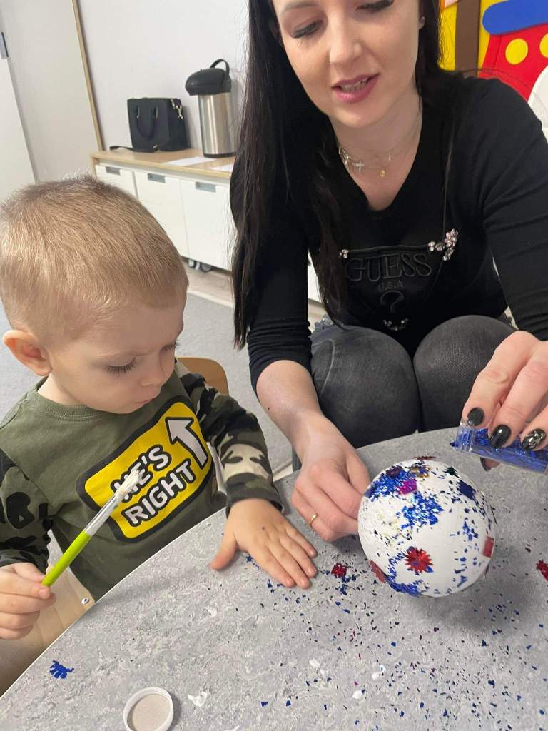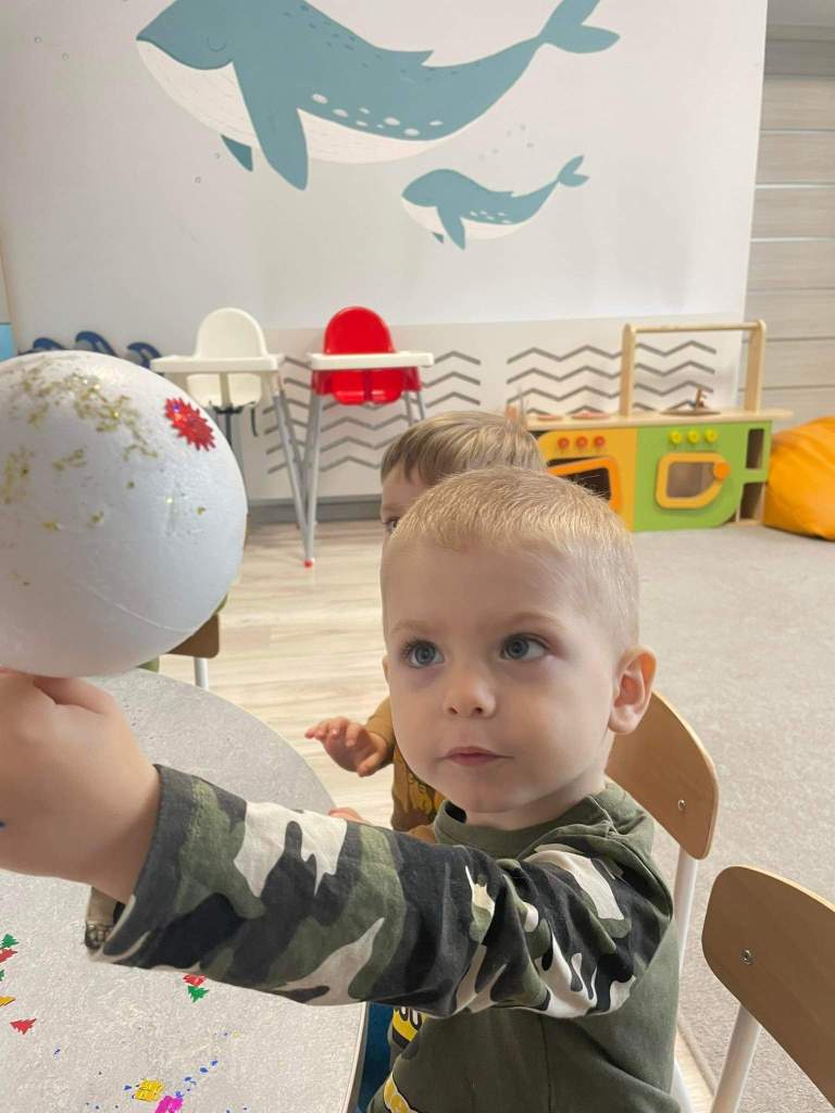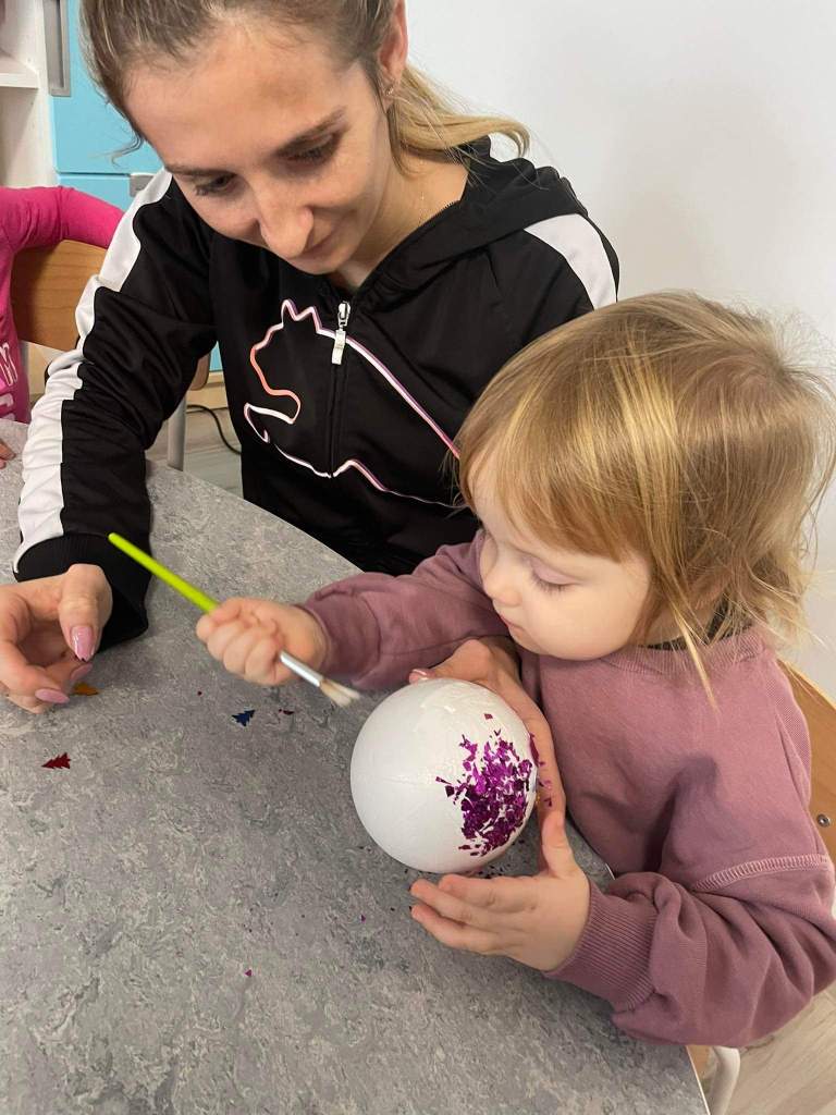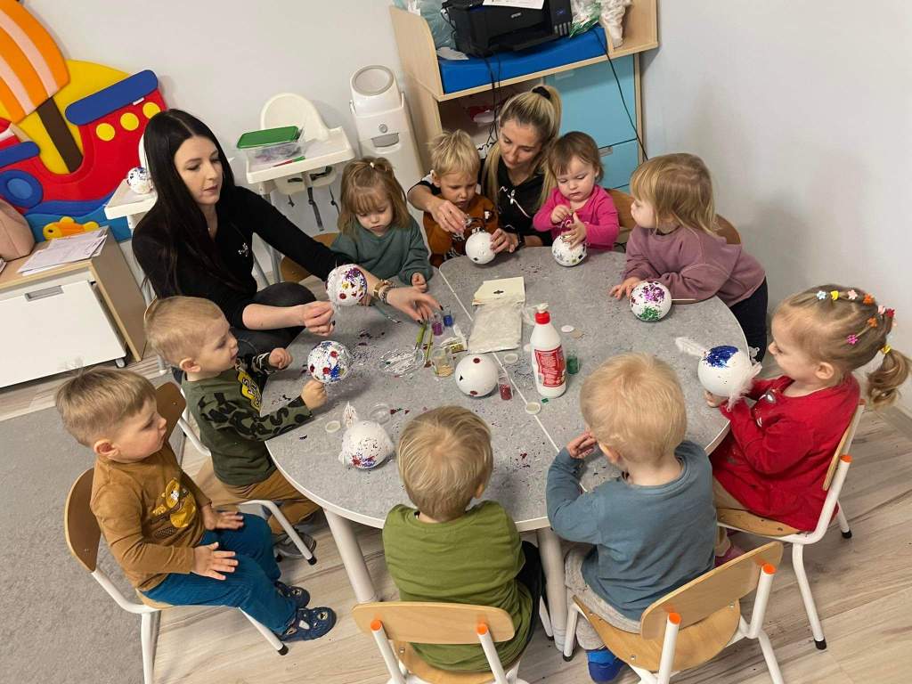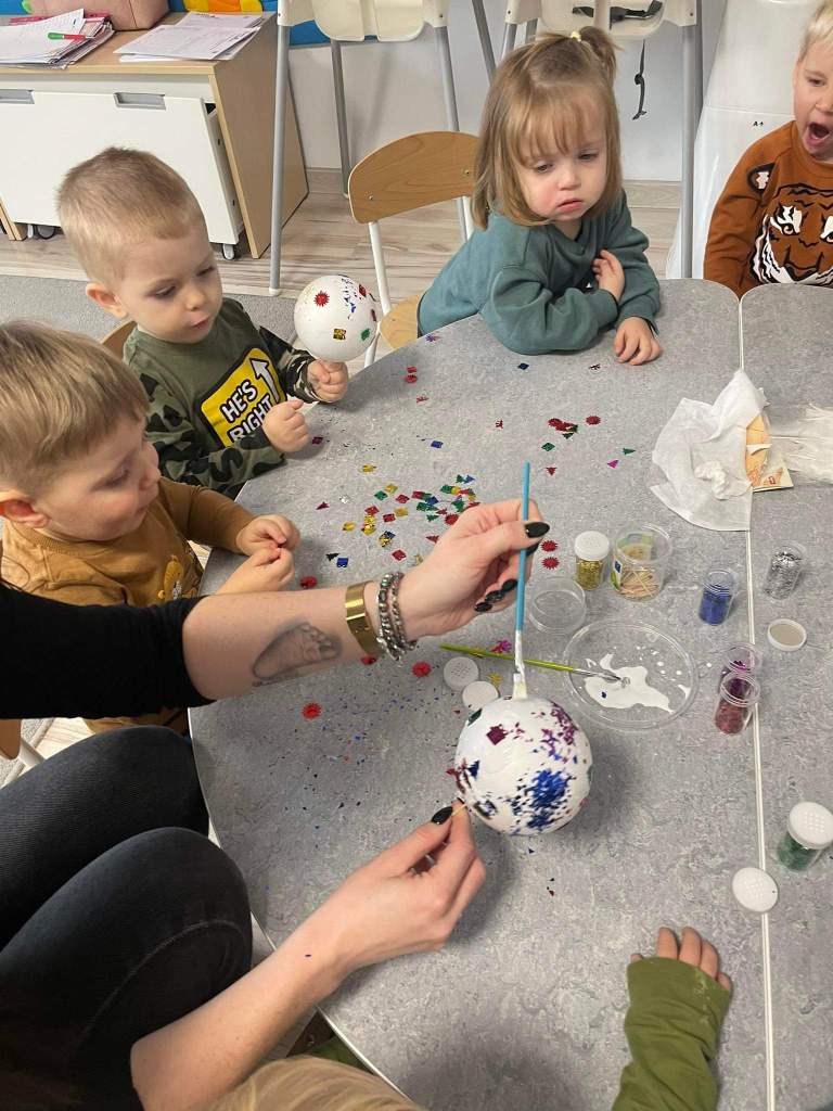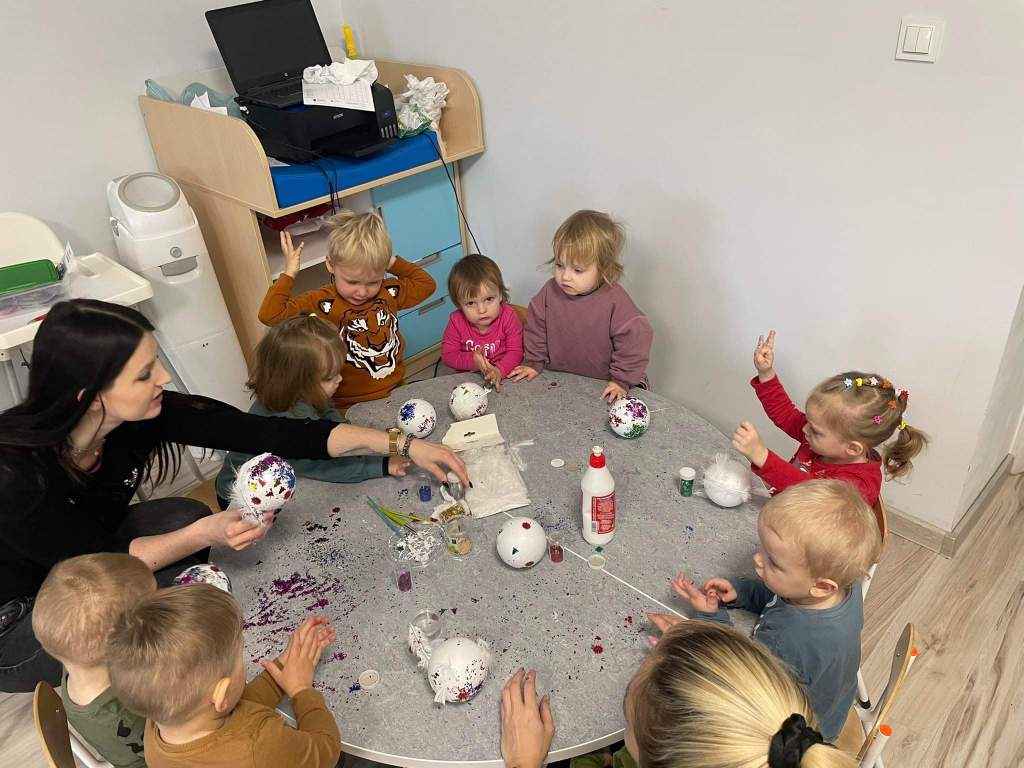 Wczoraj 07.12.2022 w naszym żłobku dzieci pod czujnym okiem opiekunek tworzyły kolorowe bombki.