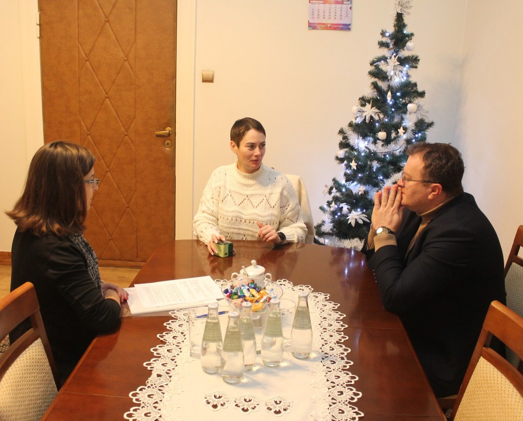 W dniu 28.12.2022r. w siedzibie Starostwa Powiatowego w Mogilnie odbyło się spotkanie dotyczące zakupu samochodu do przewozu osób niepełnosprawnych dla Stowarzyszenia ECCE HOMO z siedzibą w Strzelnie. W spotkaniu uczestniczyli: Starosta Mogileński Tomasz Krzesiński oraz Prezes Stowarzyszenia ECCE HOMO Lidia Osowicz-Chudzińska.