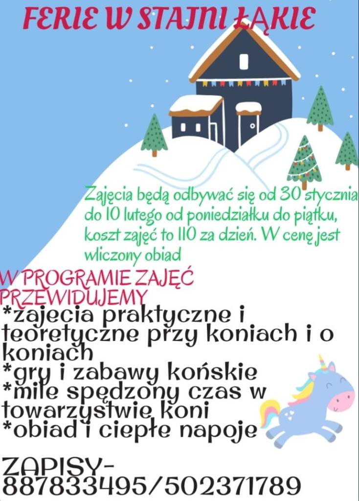 Zajęcia będą się odbywać od 30 stycznia do 10 lutego, od poniedziałku do piątku, koszt zajęć 110 zł za dzień. W cenę wliczony jest pyszny obiad.
