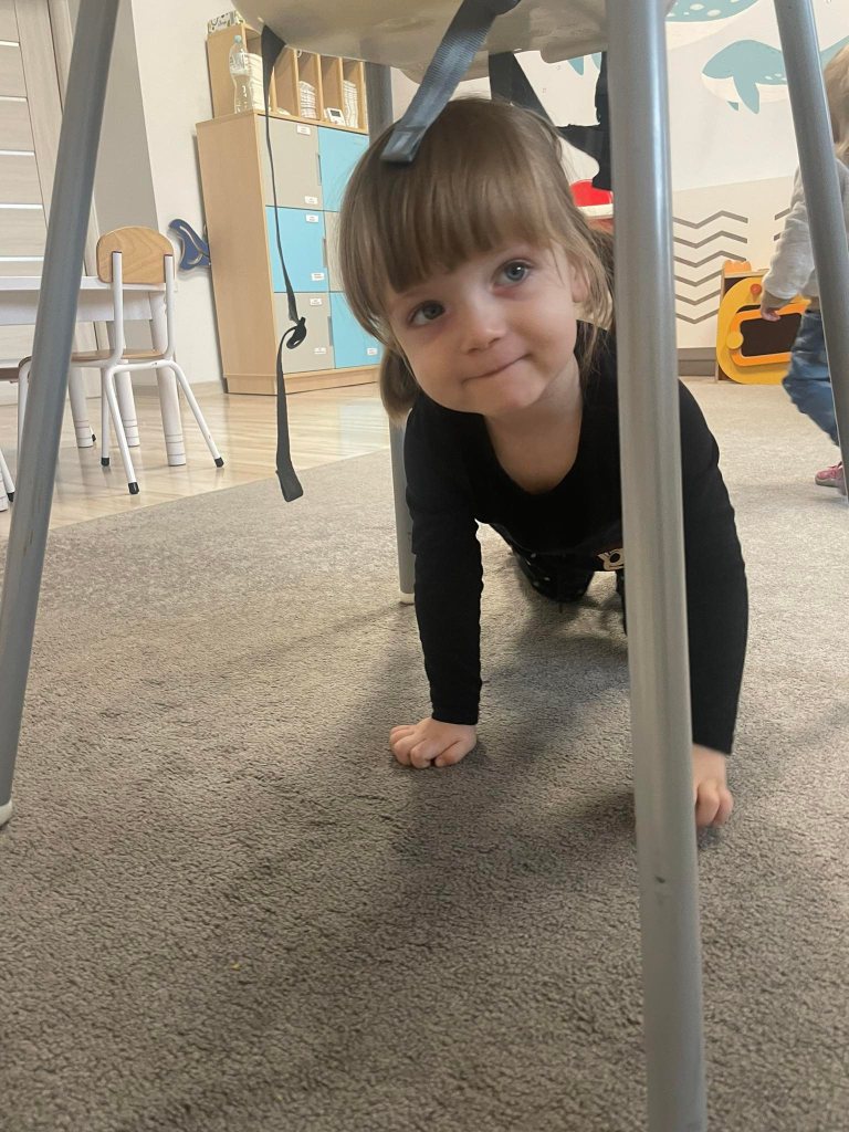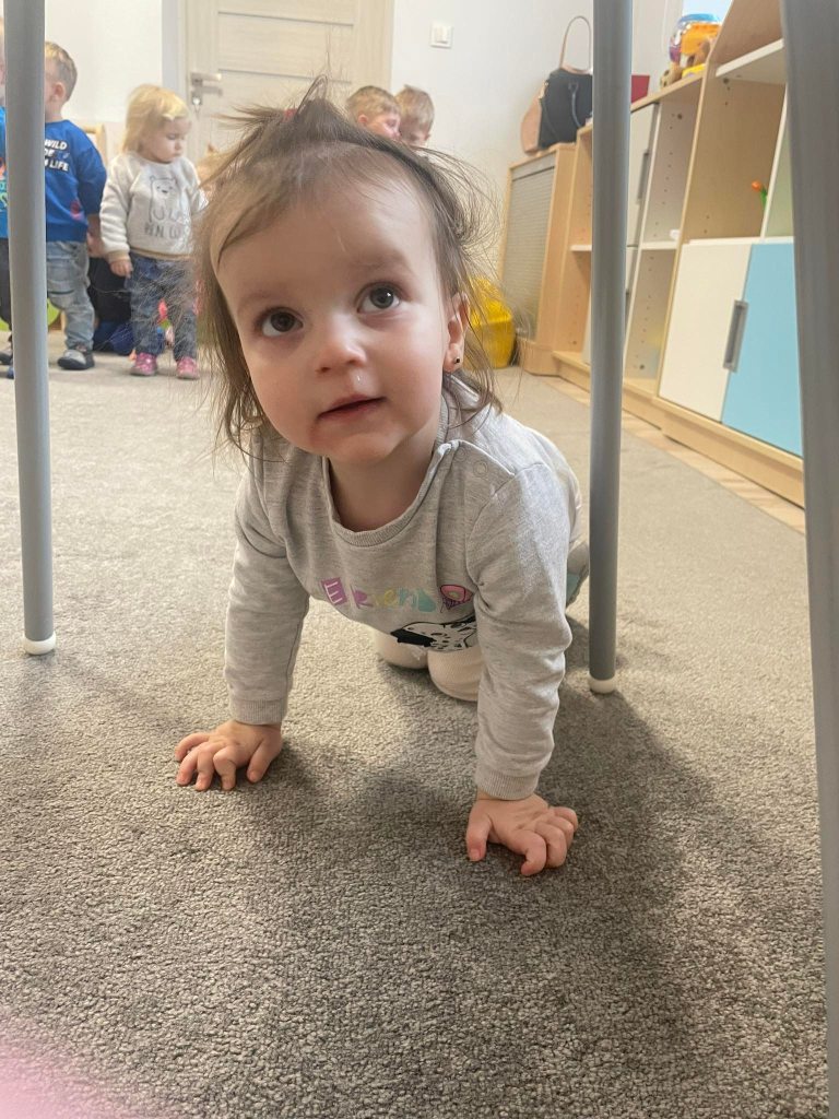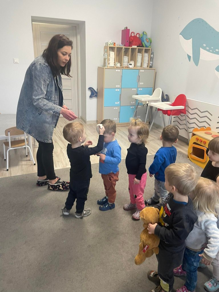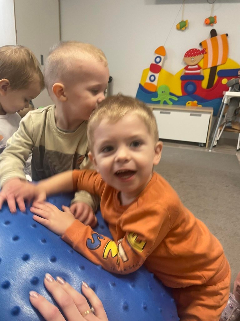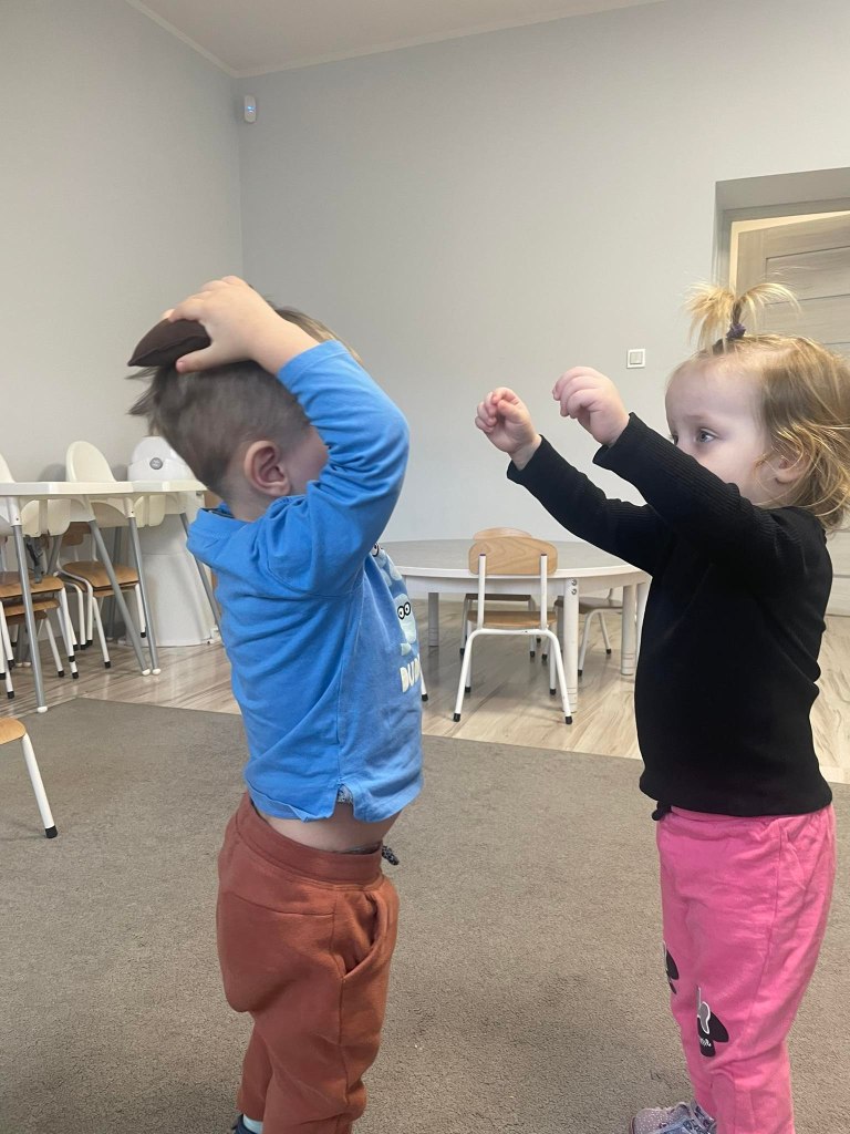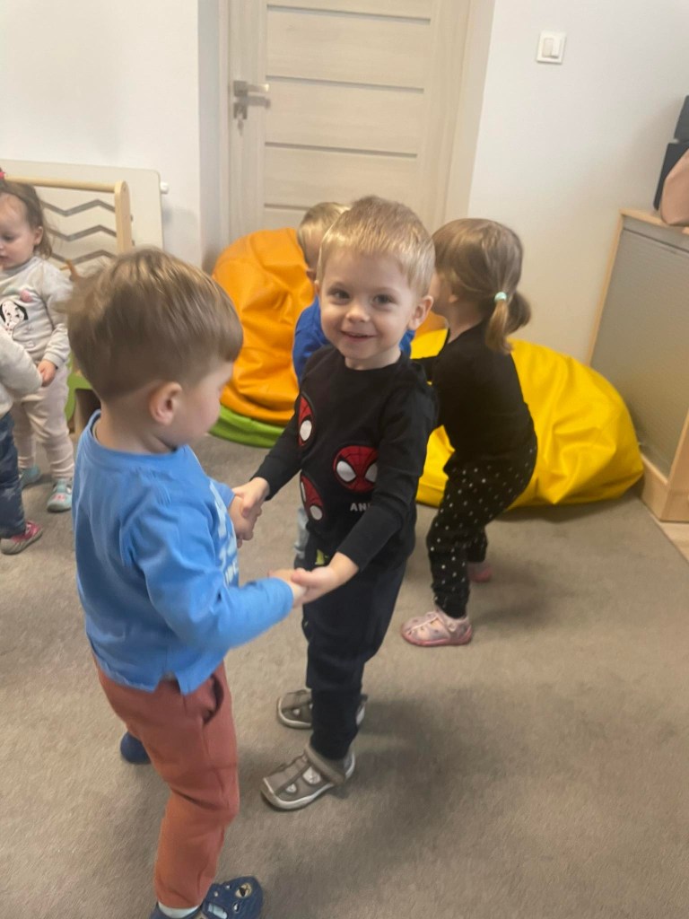 Zajęcia ruchowe wspomagające ogólny rozwój oraz prawidłową postawę, dzieci z radością wykonywały ćwiczenia zarówno w żłobku jak i na świeżym powietrzu