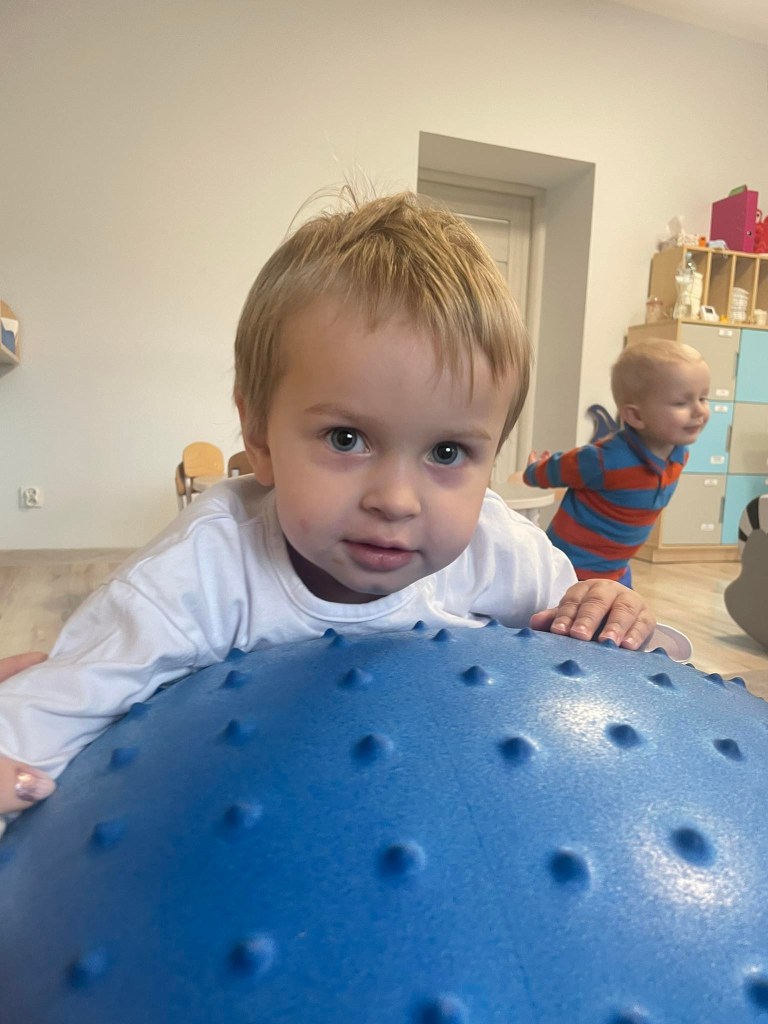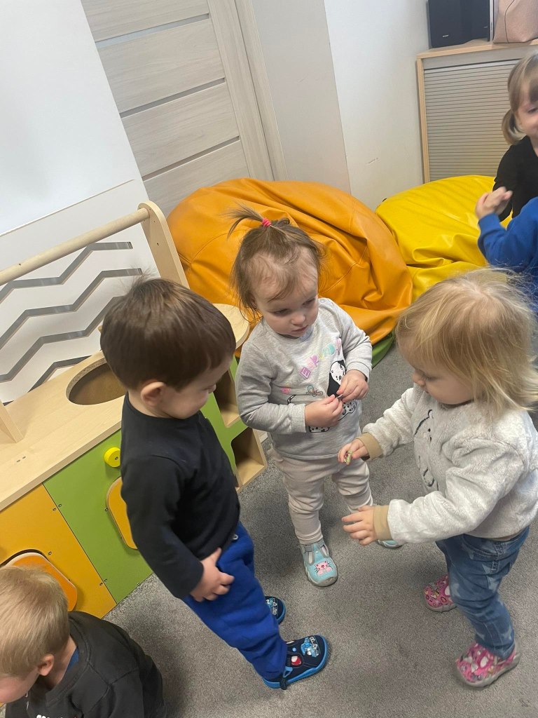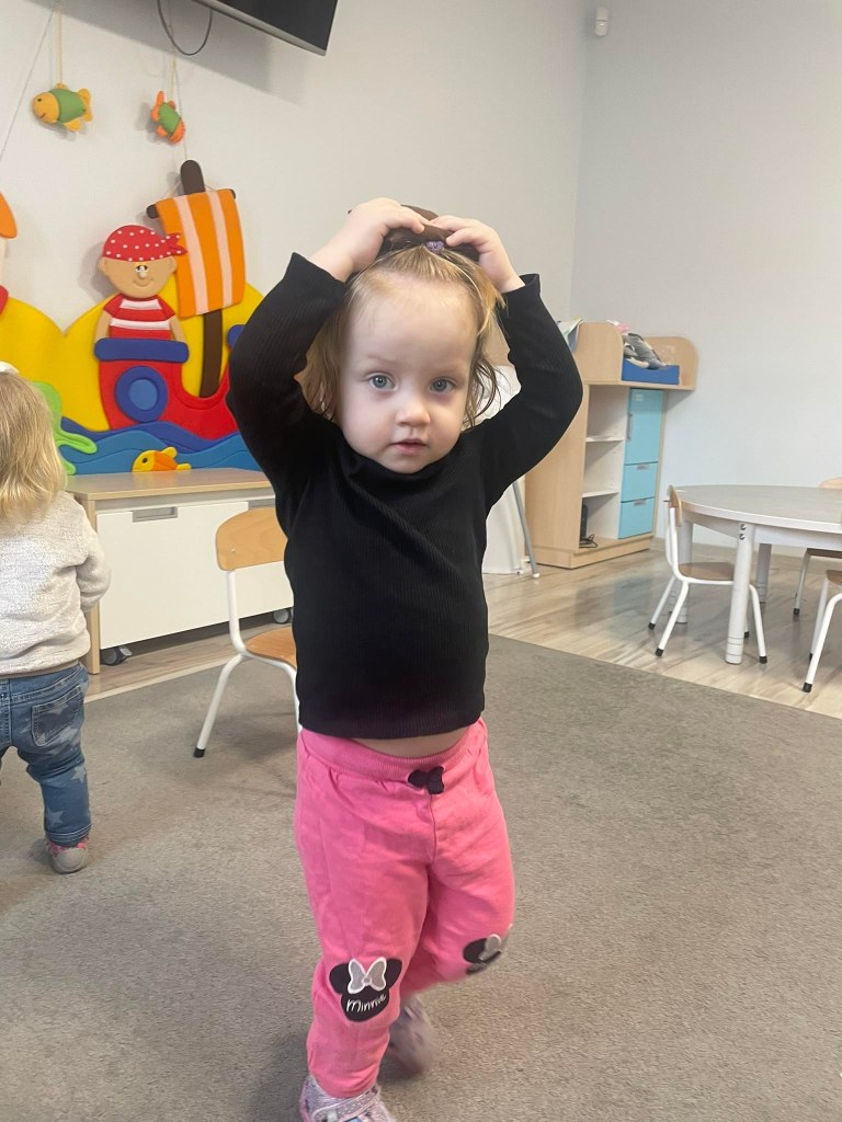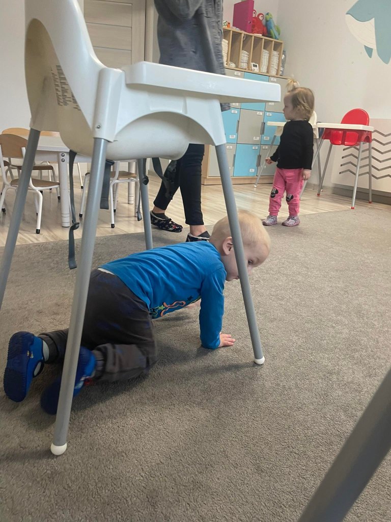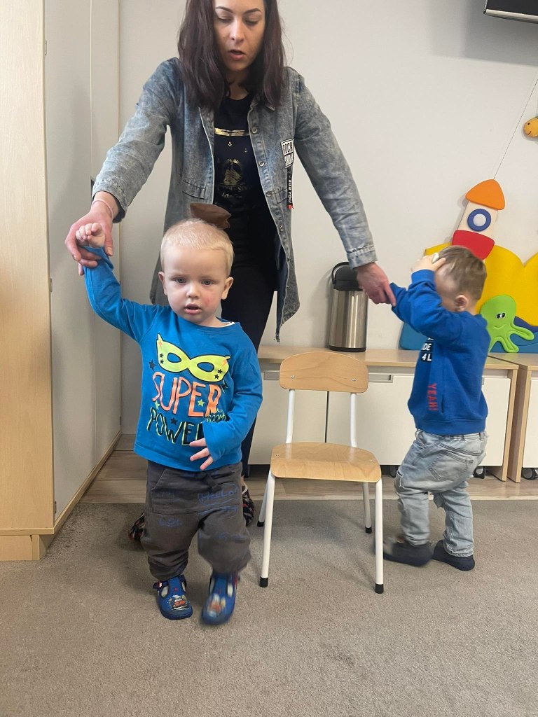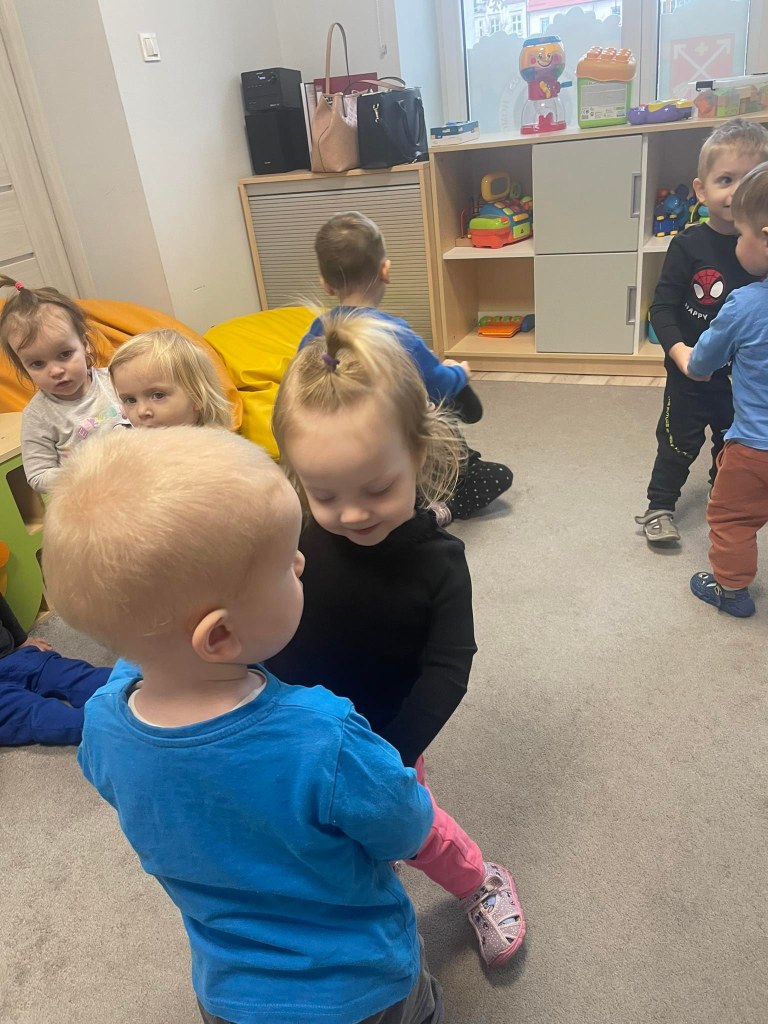 Zajęcia ruchowe wspomagające ogólny rozwój oraz prawidłową postawę, dzieci z radością wykonywały ćwiczenia zarówno w żłobku jak i na świeżym powietrzu