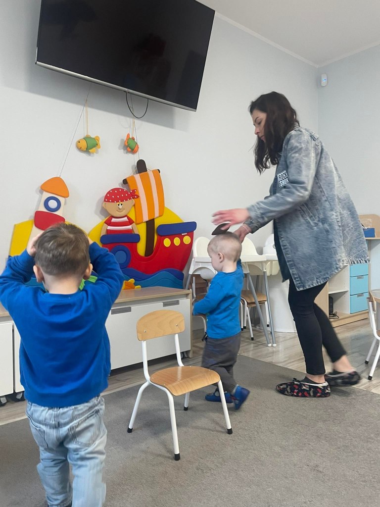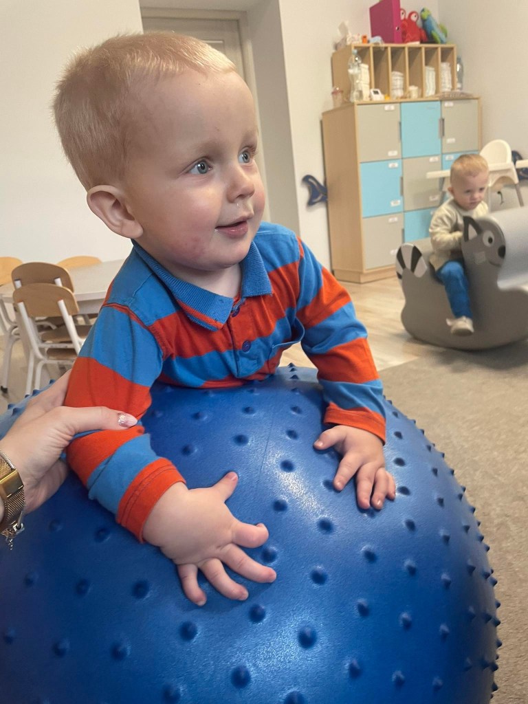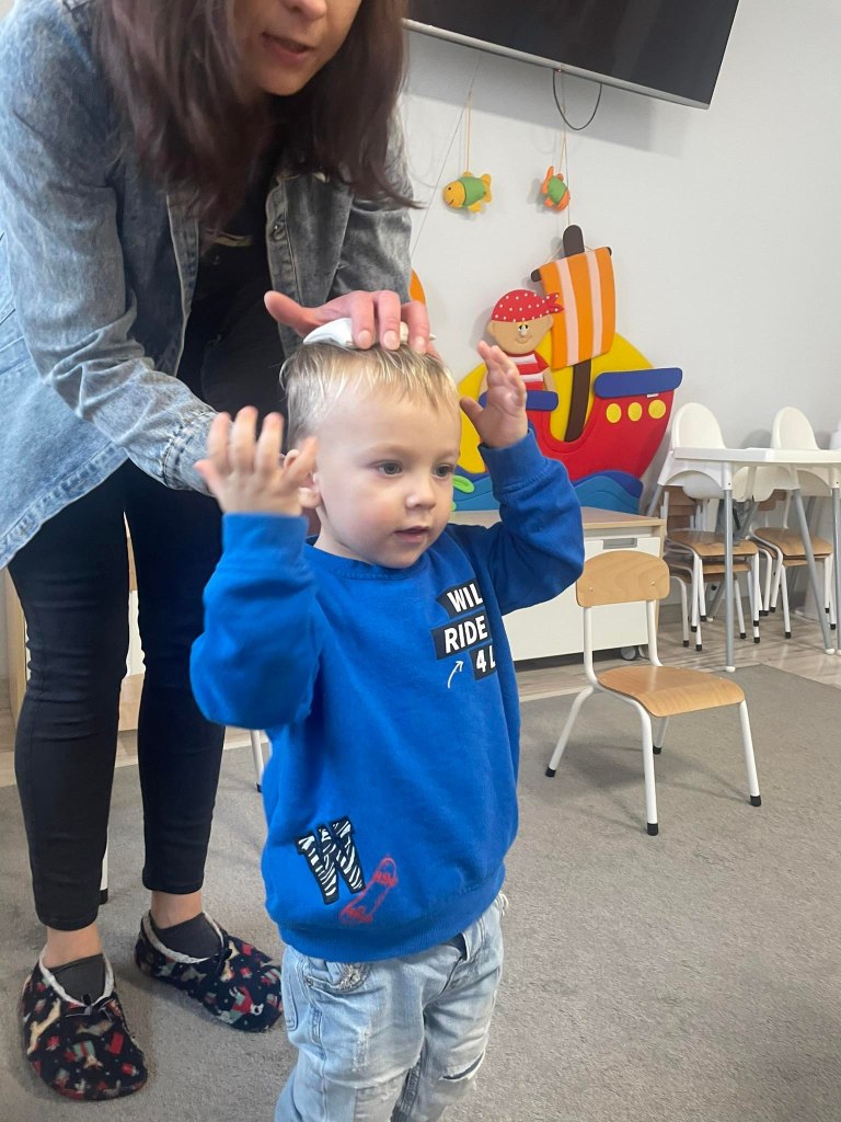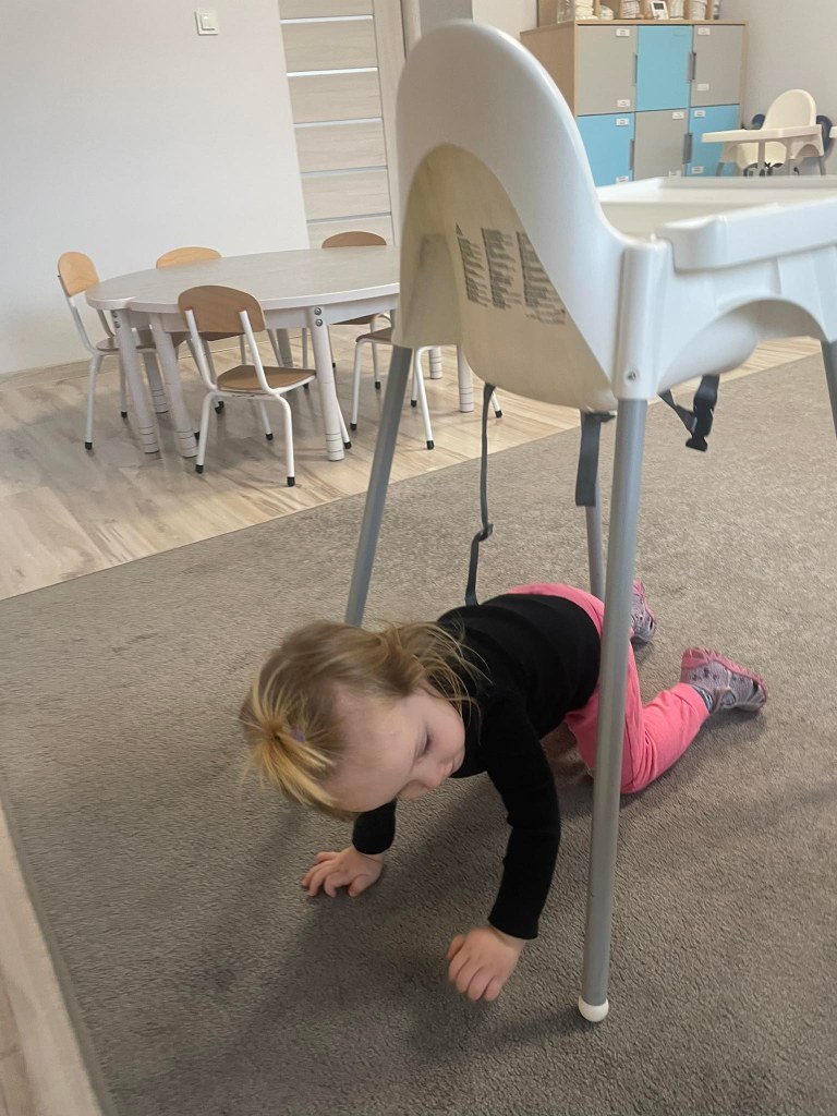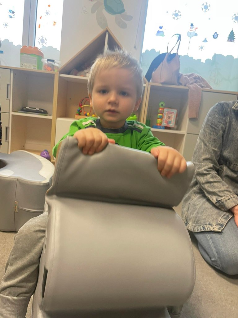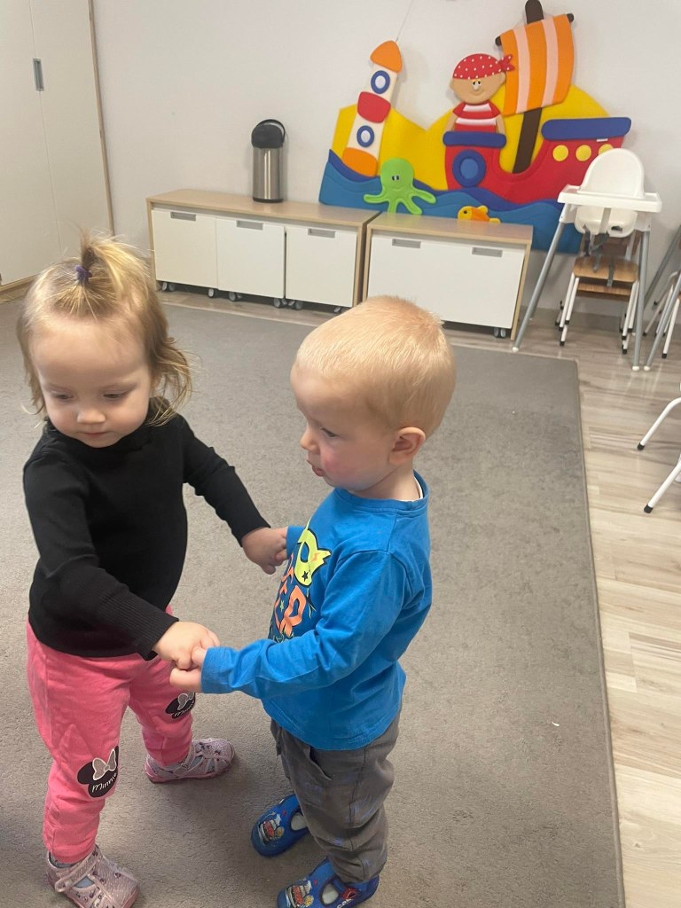 Zajęcia ruchowe wspomagające ogólny rozwój oraz prawidłową postawę, dzieci z radością wykonywały ćwiczenia zarówno w żłobku jak i na świeżym powietrzu