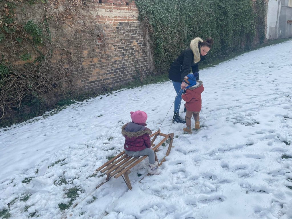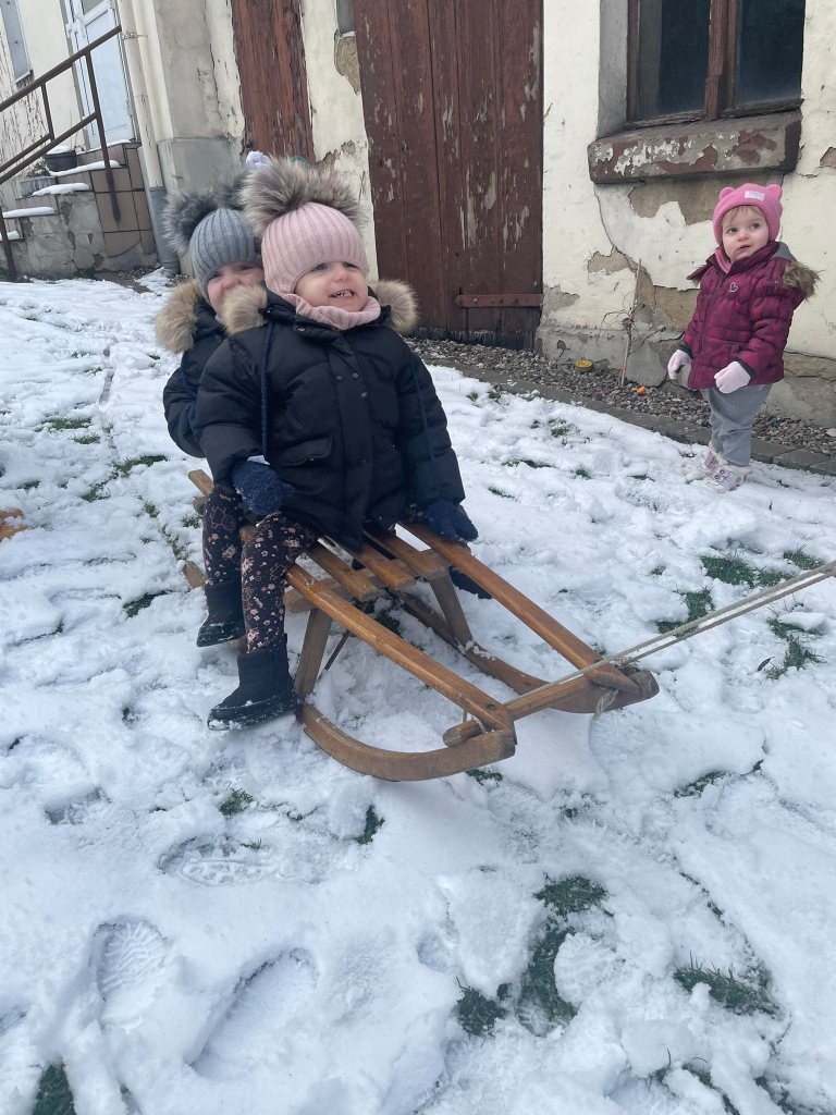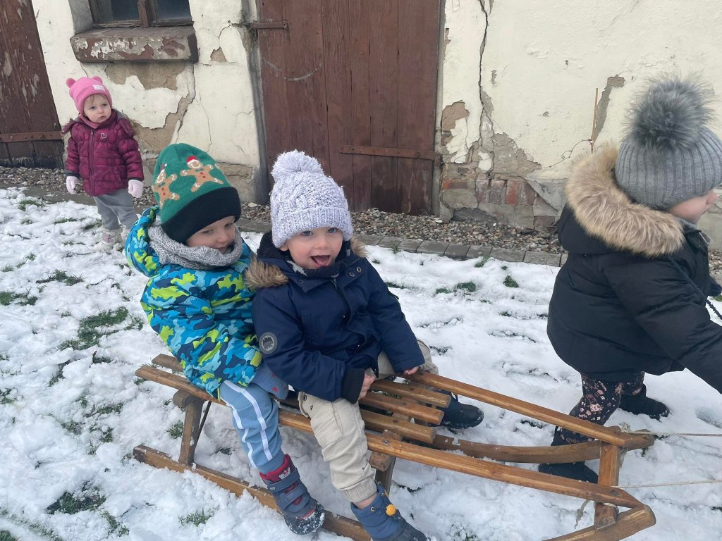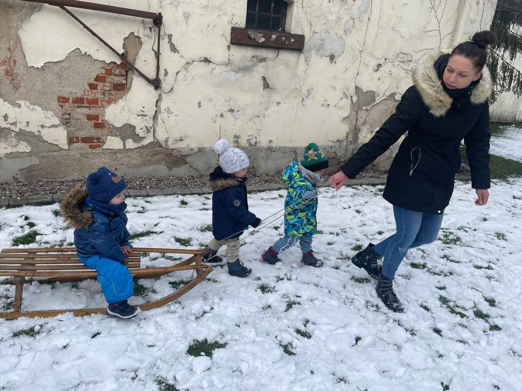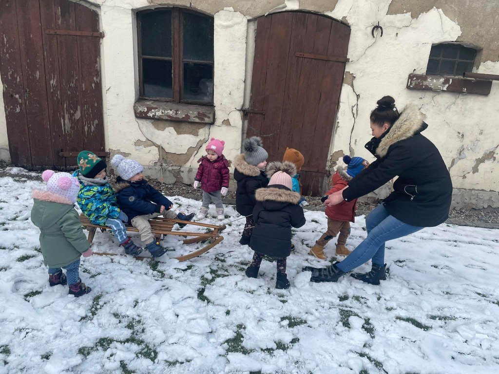 Nie zabrakło jazdy na sankach oraz wspólnej zabawy na śniegu podczas lepienia bałwana.