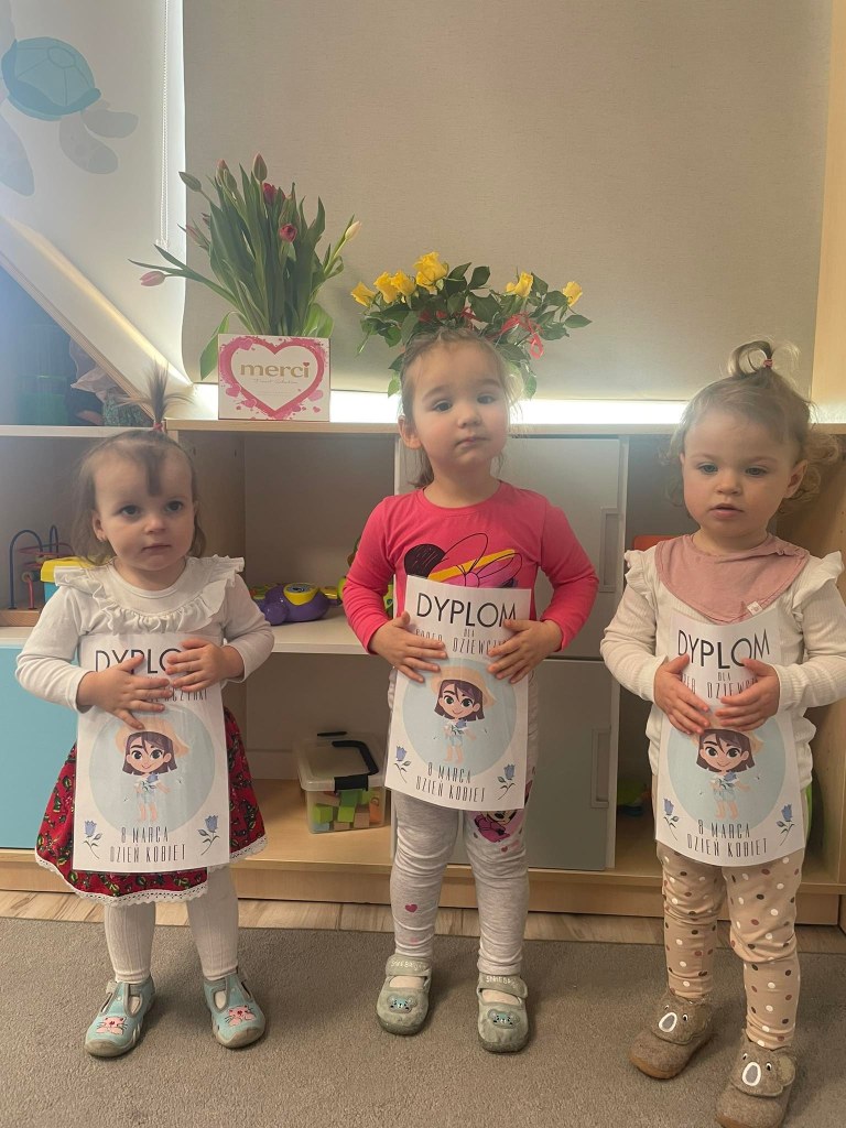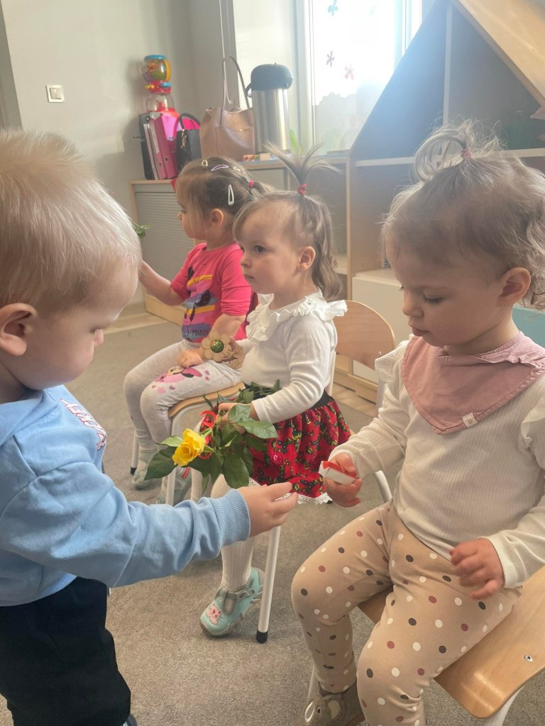 Wczoraj dzieci z naszego żłobka obchodziły Dzień Kobiet, nie zabrakło kwiatów oraz słodkości 🙂