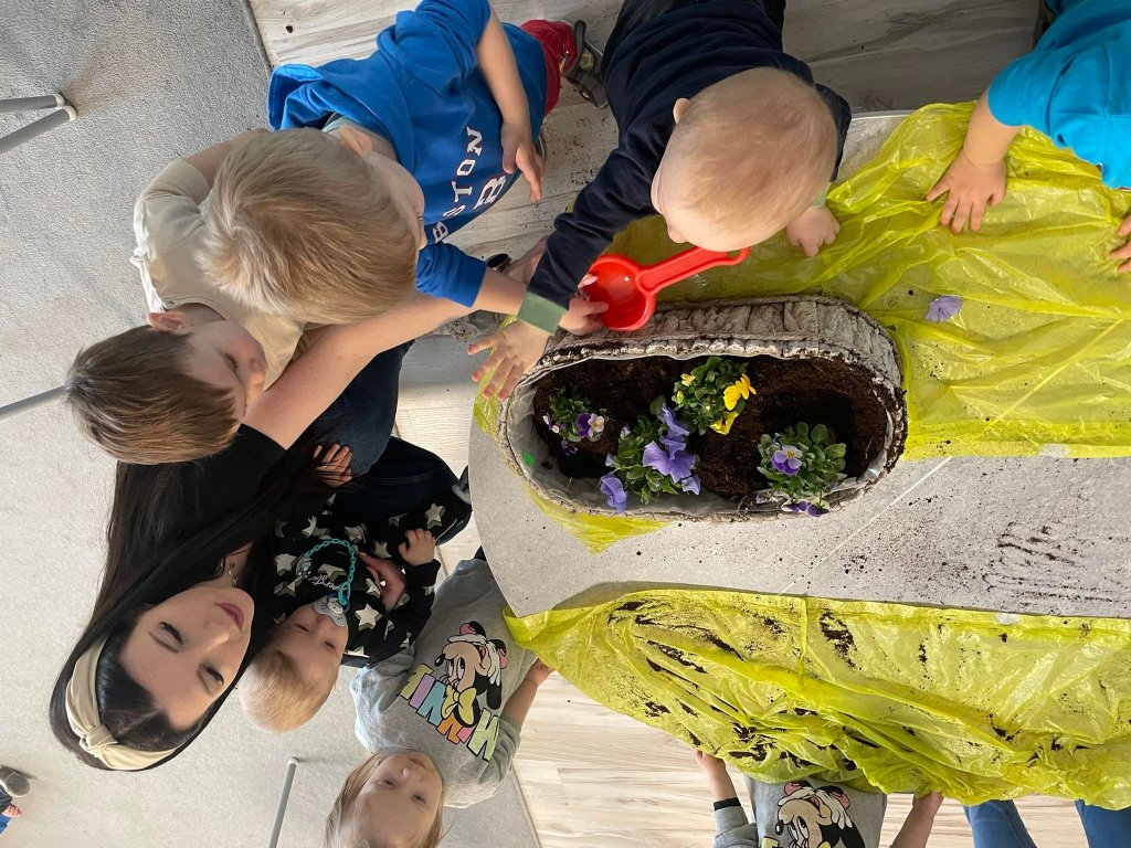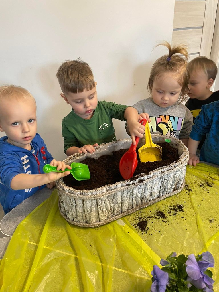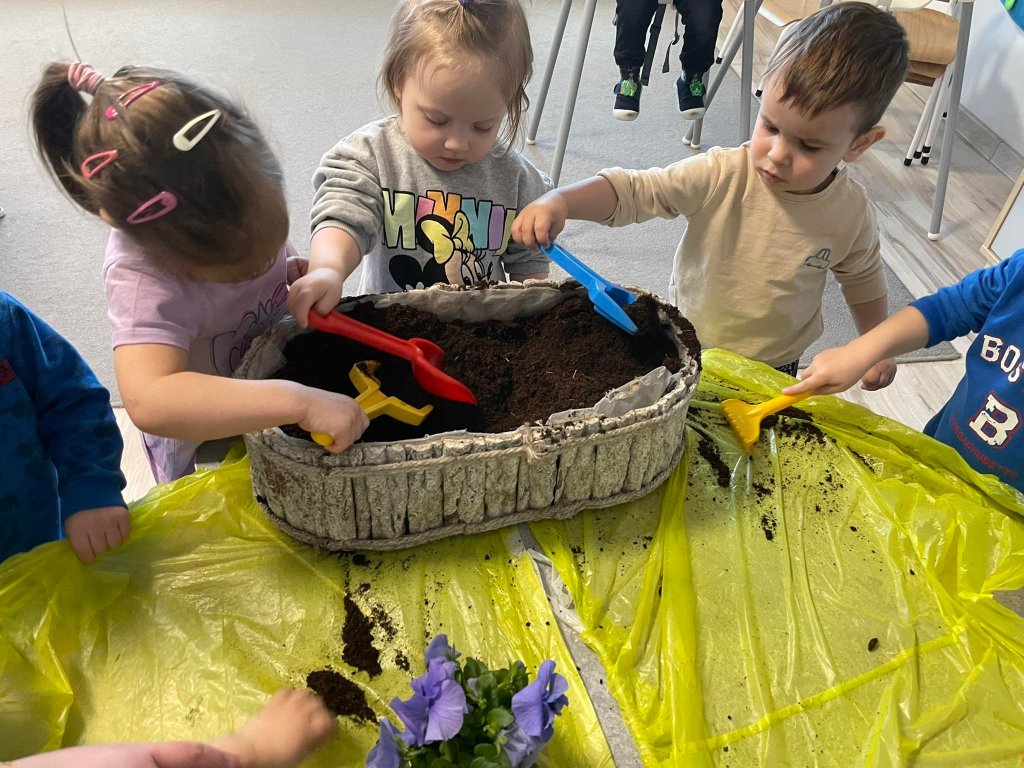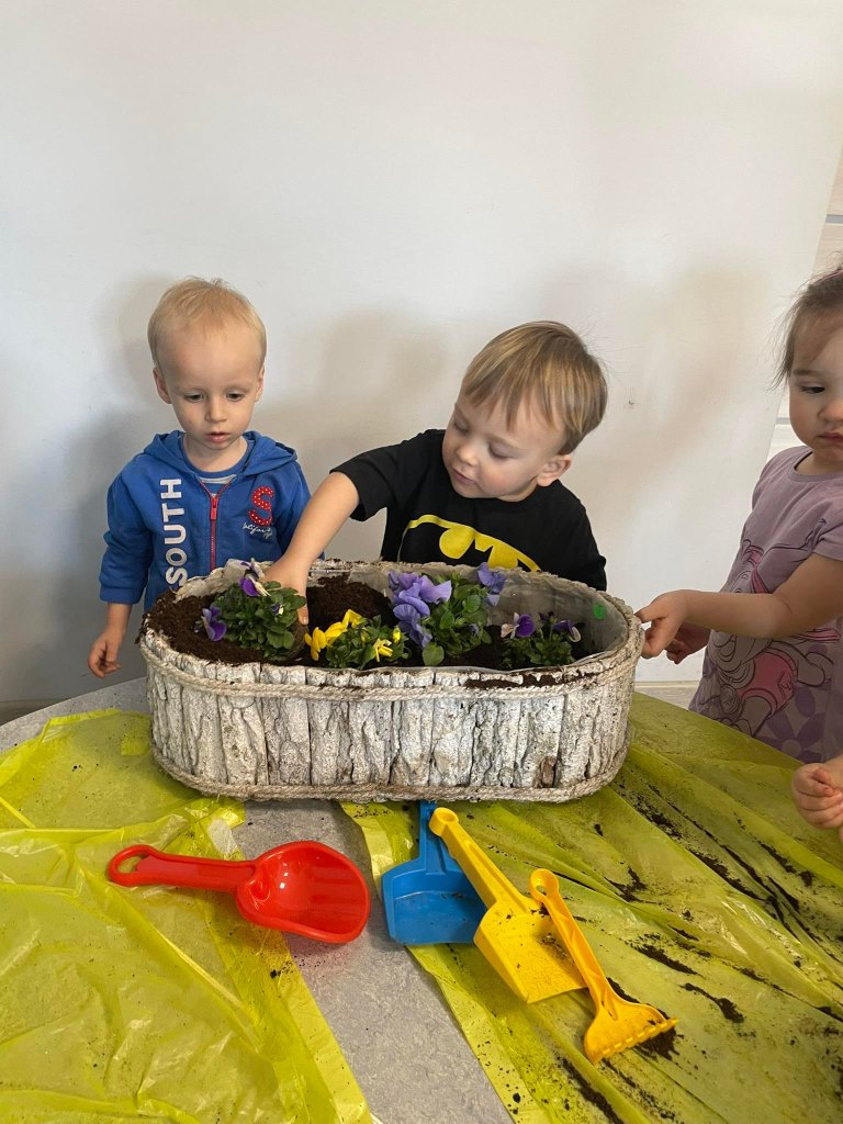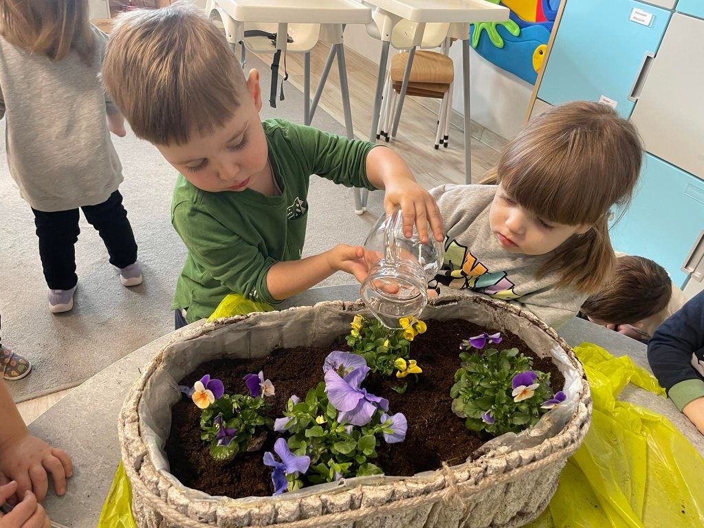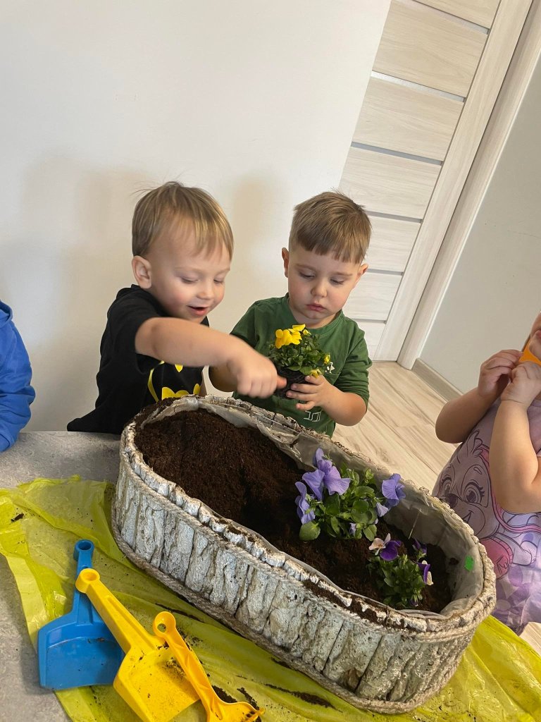 Dziś mali ogrodnicy wspólnie zasadzili bratki