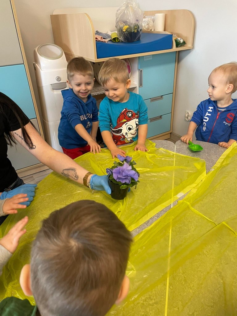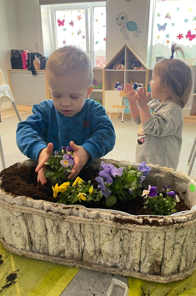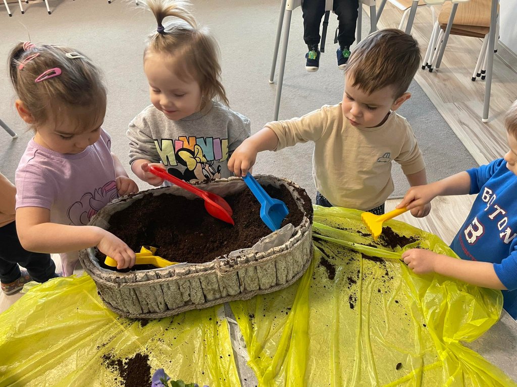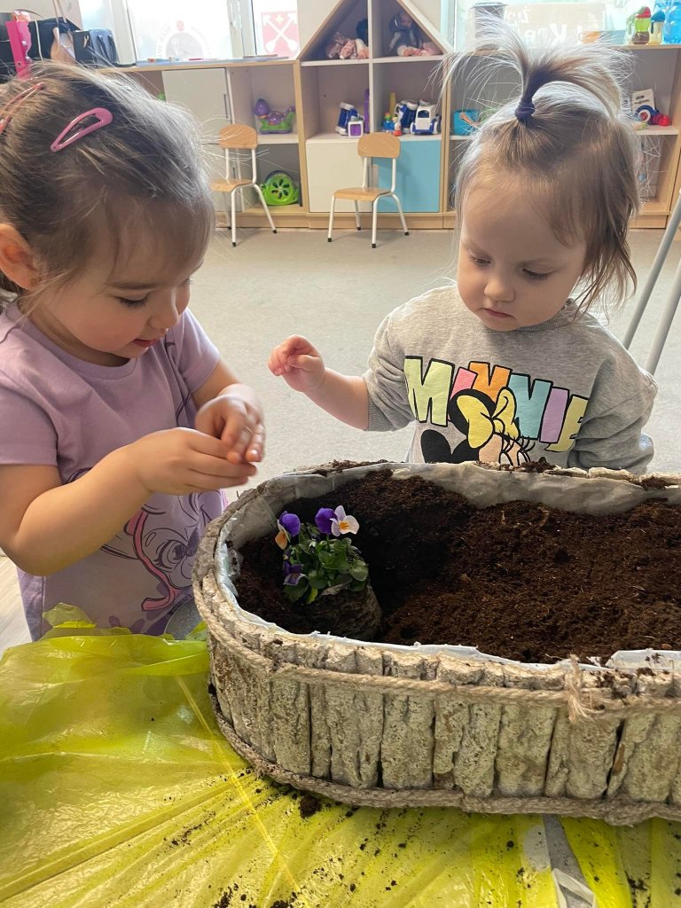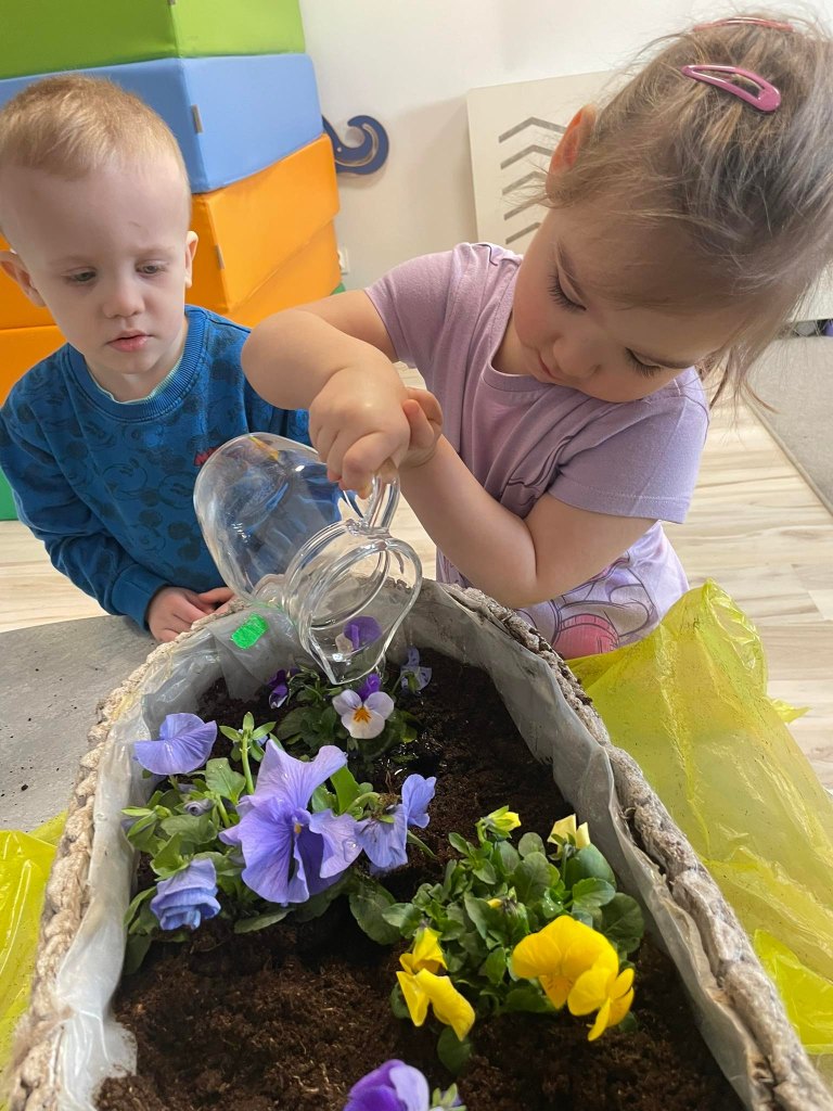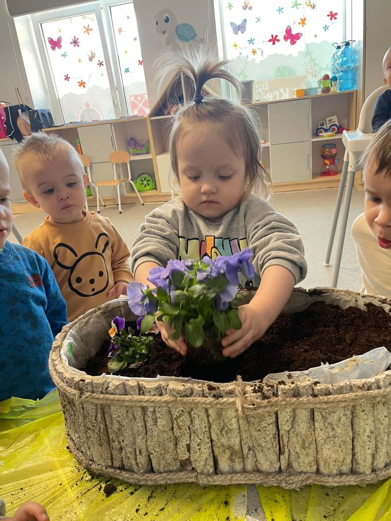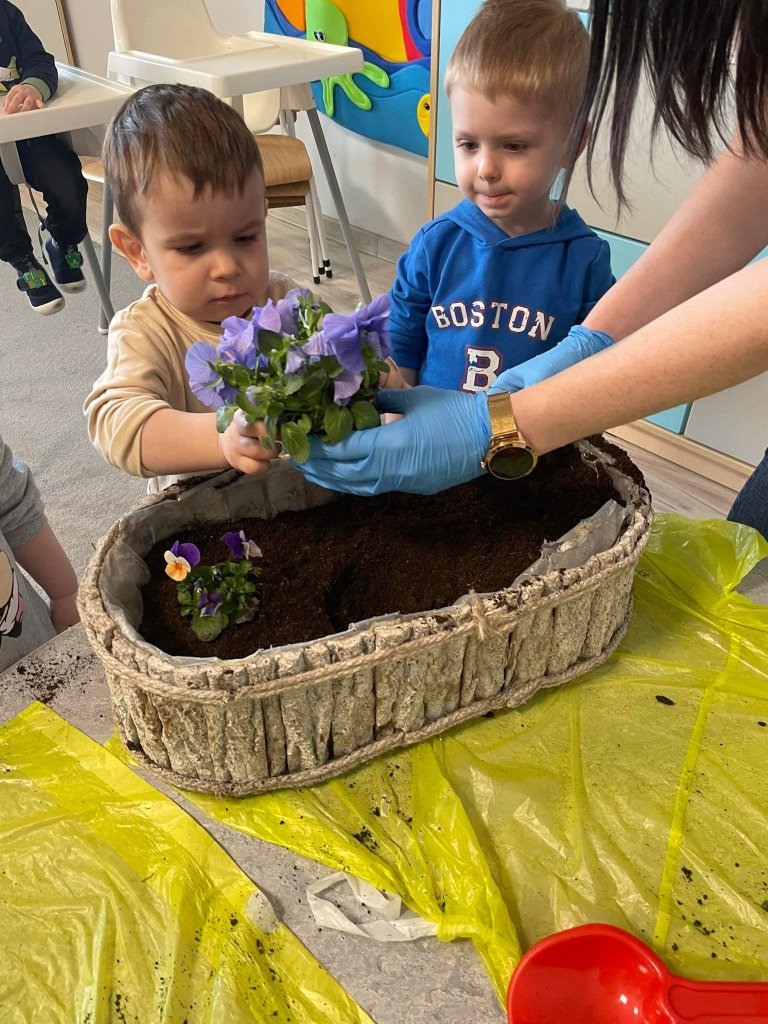 Dziś mali ogrodnicy wspólnie zasadzili bratki