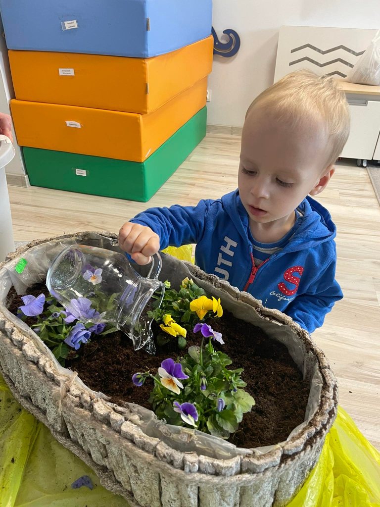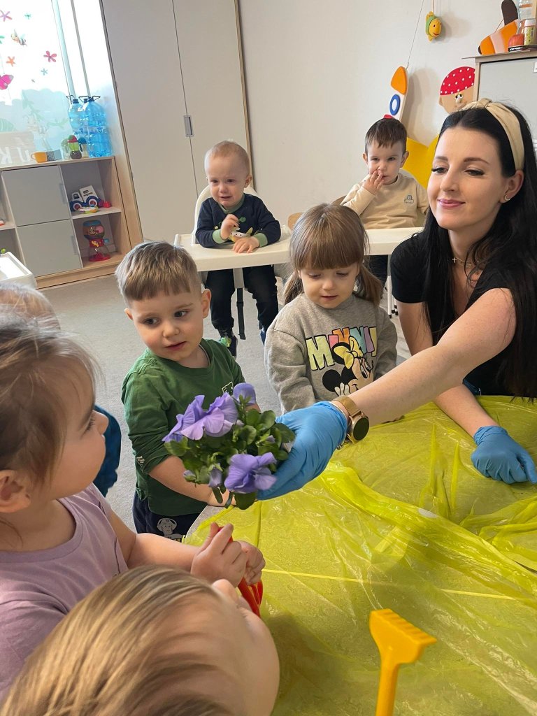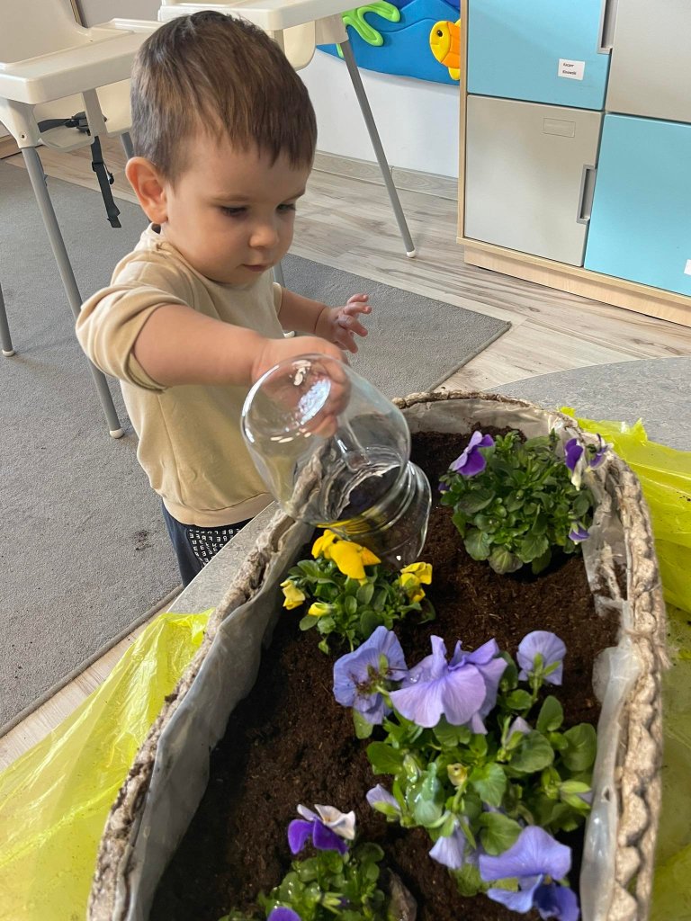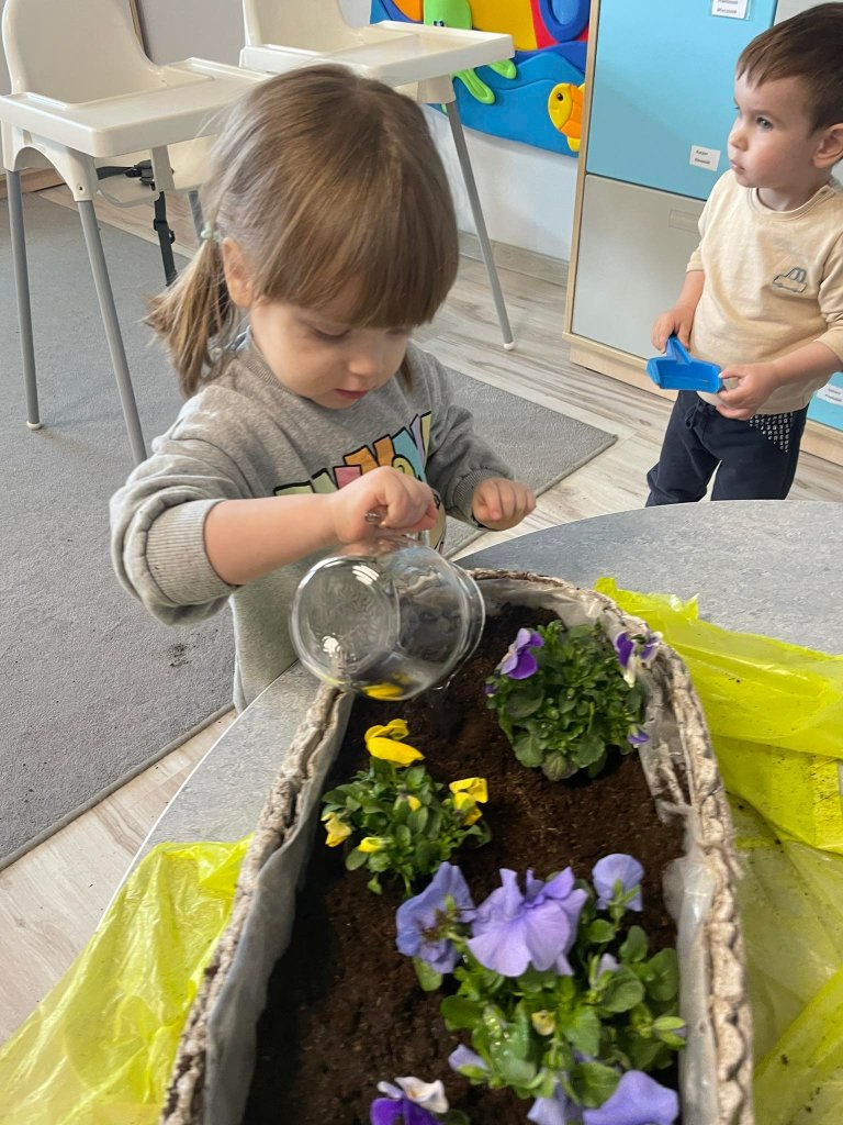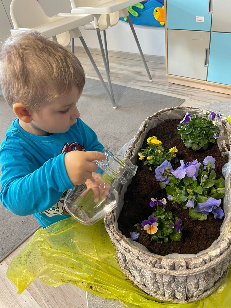 Dziś mali ogrodnicy wspólnie zasadzili bratki w ciągu kolejnych dni dzieci będą mogły je pielęgnować oraz obserwować efekty swojej pracy