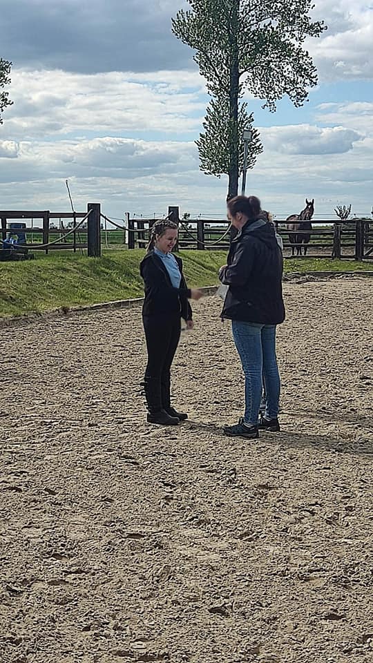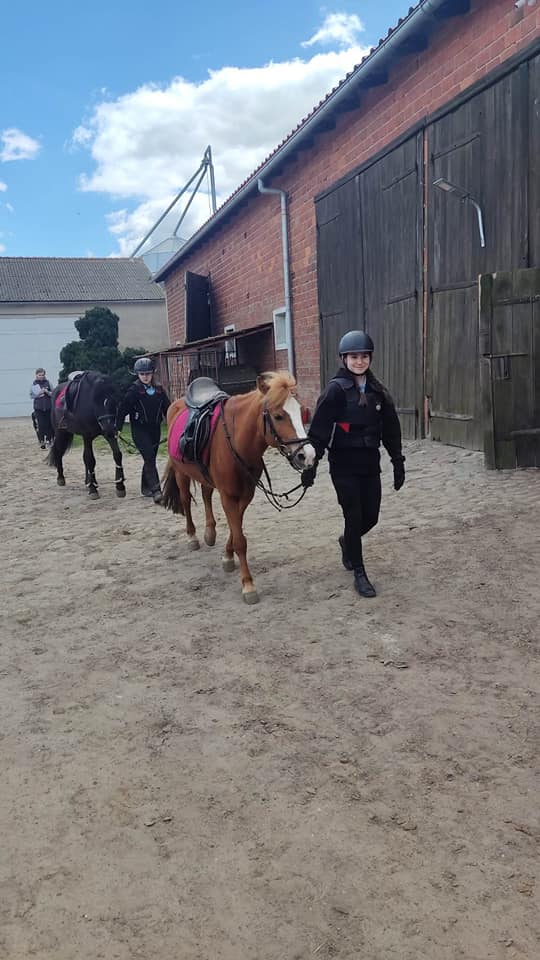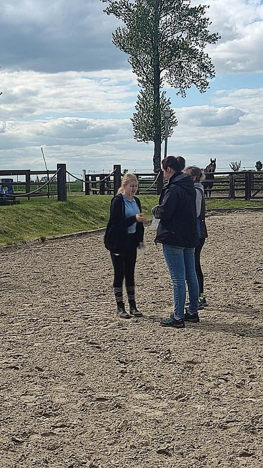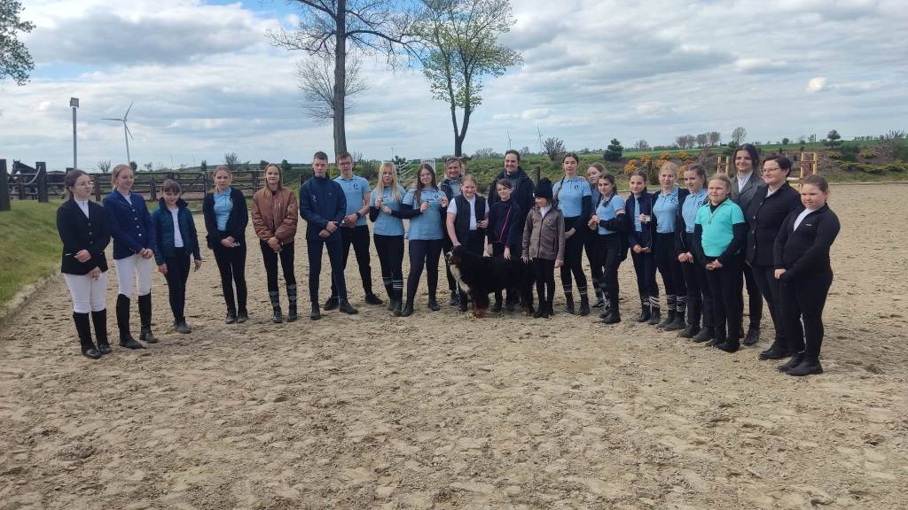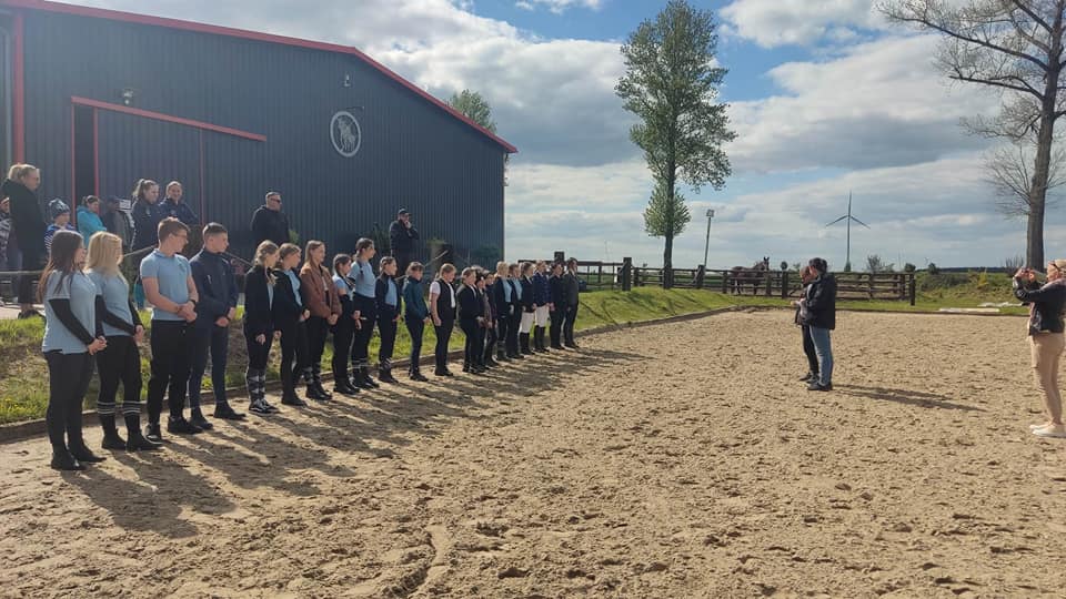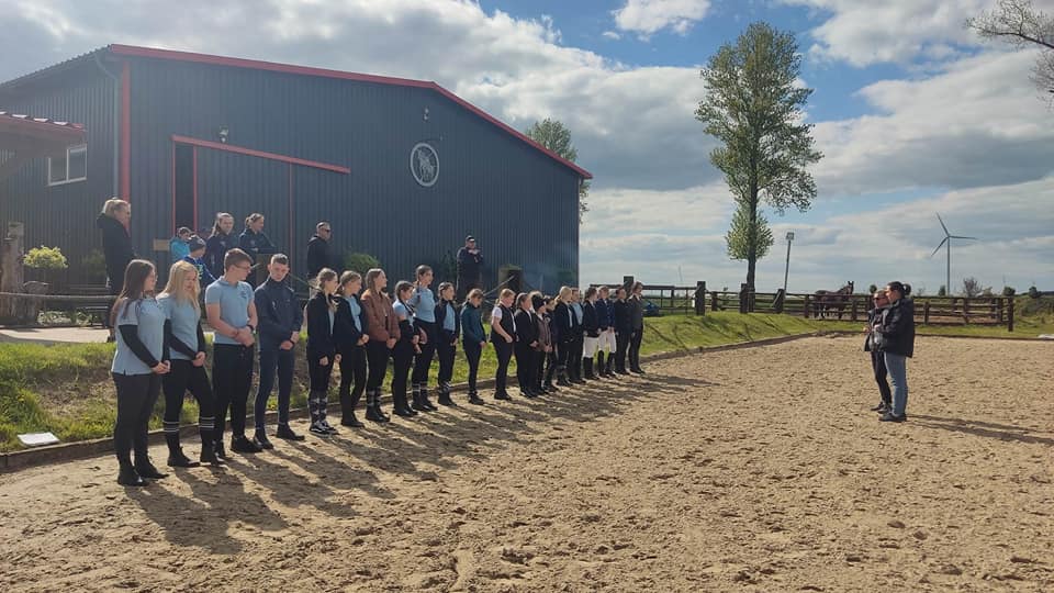 Pierwsza grupa jeźdźców ze Stajni Łąkie z odznakami Jeżdżę Konno. Szczęśliwa 13, a to dopiero początek. Pod okiem Instruktorów AleksandryWojciechowskiej Lidii Chudzińskiej Julii Kaszyńskiej zdały poszczególne osoby: